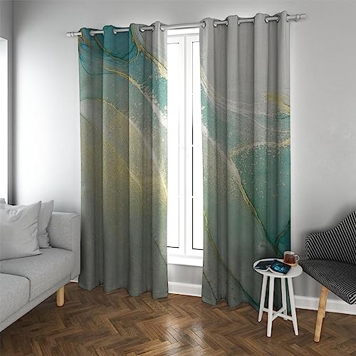 Nordic - Cortinas opacas modernas de mármol verde azulado y dorado, 55 x 102 pulgadas, 2 paneles, cortinas elegantes para oficina y cafetería, protección de privacidad, elegantes tratamientos de